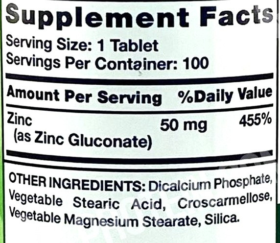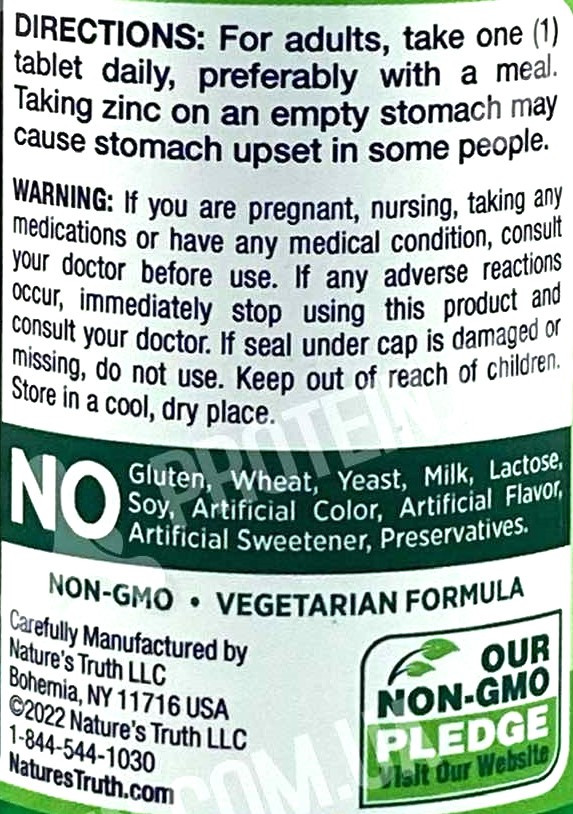 Nature`s Truth Chelated Zinc (Zinc Gluconate) 50 mg 100 tablets