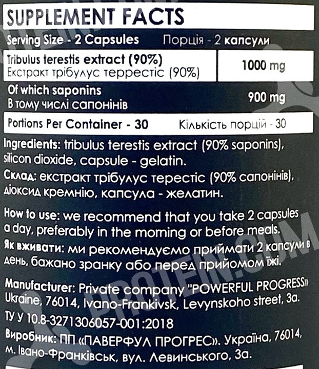 Powerful Progress Tribu-x Tribulus Terrestris Tribulus Terrestris 1000 mg per serving 60 capsules